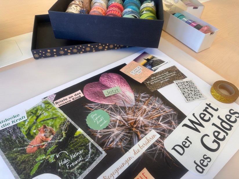 - Mitbringen: Offenheit, Freude am Gestalten, evtl. Lieblingsstifte oder eigene Lieblingsfotos/Bilder, schöne Sprüche für das Vision Board (optional), gerne darfst du auch dein Lieblingsmagazin mitbringen (sind vor Ort aber auch genügend vorhanden).