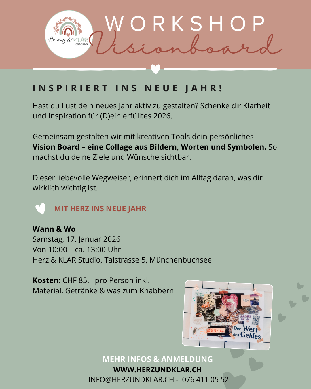 Erlebe einen inspirierenden Workshop, starte bewusst ins neue Jahr und nimm dein Vision Board als kraftvollen Anker für 2026 mit nach Hause.